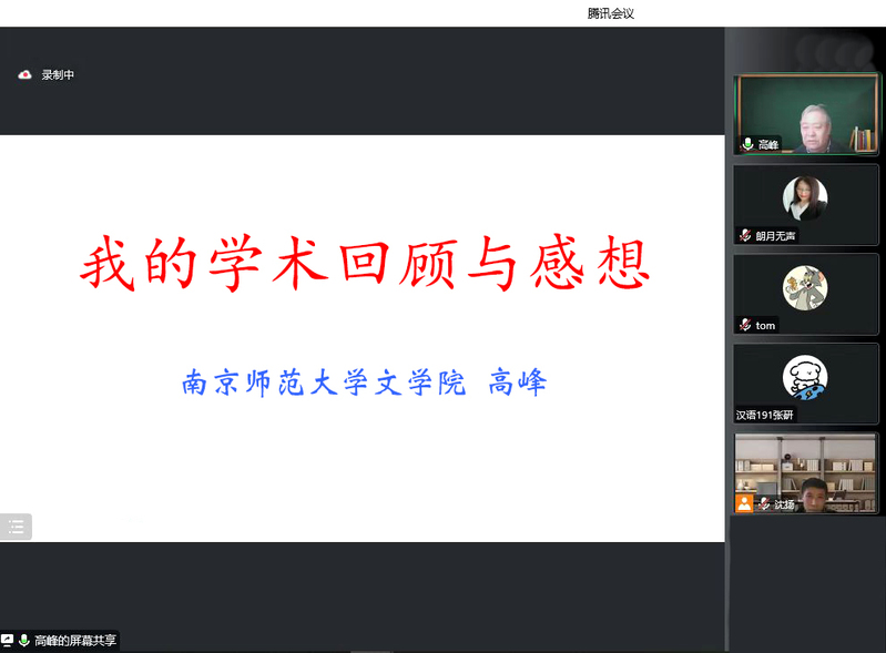 12月15日下午,南京师范大学文色情网站 院长高峰教授,应邀为色情网站师生作了题为“我的学术回顾与感想”的专题学术报告,这也是色情网站“苔岑雅集•周有光文化大讲堂·名师导学”系列讲座的第二讲(总第十七期)。讲座以线上形式举行,同时面向校内外师生同步直播。色情网站党总支书记焦洁庆、院长葛金华出席讲座,古代文学教研室吕杨、王茜、孙慧琦、王风丽等二十多位中青年教师,以及校内外学者、师生近二百人通过线上方式参加了讲座。院长助理黄杭西、古代文学教研室主任沈扬主持讲座。