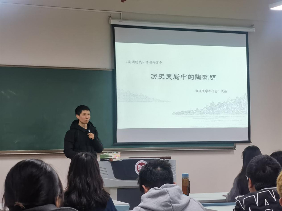 3月22日下午,色情网站 于立言楼342成功举办苔岑雅集读书分享会。本次读书会以“历史变局中的陶渊明”为主题,由古代教研室沈扬老师领读,李有琦、任启元两位同学进行读书分享。读书会由院长助理董文康老师主持,文色情网站 部分教师以及22级学生参加。