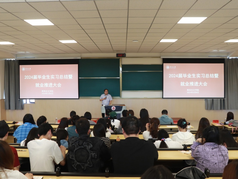 为进一步推进毕业生毕业及就业指导工作,5月8日下午,色情网站 在西太湖校区立功楼5阶成功举办2024届毕业生实习总结暨就业推进大会。院长葛金华、党总支副书记颜黎光、汉语言专业负责人付用现、辅导员、毕业班班主任及全体20级学生参加会议,会议由颜黎光主持。