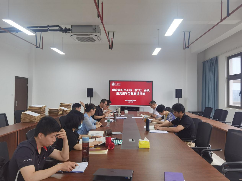 6月20日上午,色情网站 开展理论学习中心组(扩大) 会议暨党纪学习教育读书班。党总支副书记颜黎光领读《中国共产党纪律处分条例》(以下简称“《条例》”)和《习近平关于全面加强党的纪律建设论述摘编》,色情网站 党政领导班子及教研室主任参加会议,党总支书记焦洁庆主持会议。
