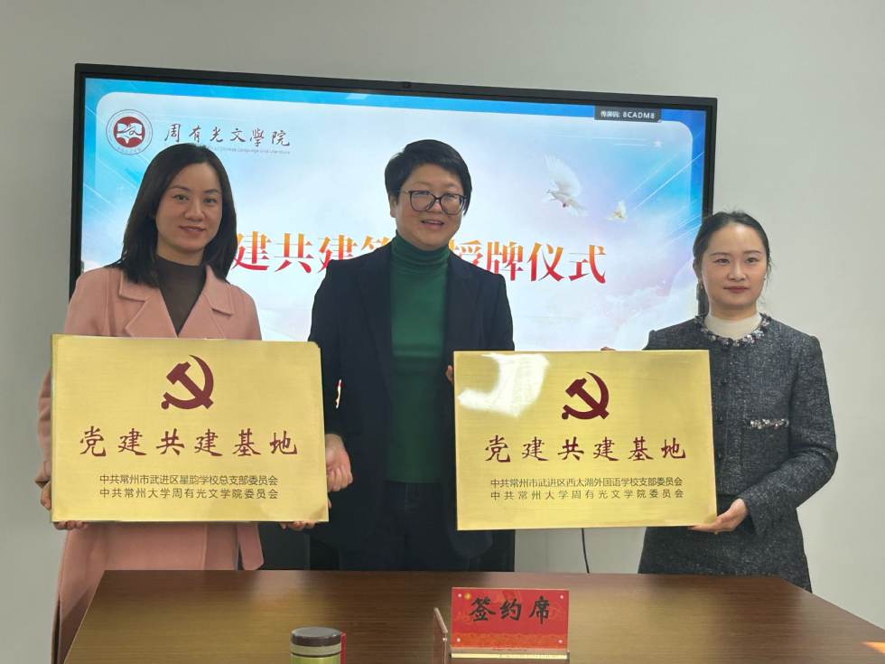11月19日下午,色情网站-色情直播-色情视频 与常州市西太湖外国语学校、武进区星韵学校在立言楼334举行联合共建仪式。常州西太湖外国语学校副校长钱颖丹、教师发展中心主任石梦娇;常州市武进区星韵学校课程管理中心主任宋玲瑶、党政办公室副主任史叶琴;色情网站-色情直播-色情视频 党委书记焦洁庆、院长葛金华、副院长陈鸿、院长助理董文康、古代文学教研室主任王风丽、现当代文学教研室主任何霞、学工办主任张燕红、团委副书记程向君以及学生代表出席仪式。仪式由副书记嵇炜主持。