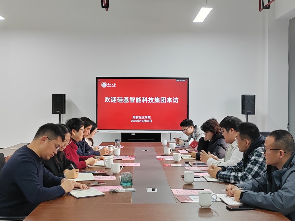 12月30日上午,硅基智能科技集团、江苏省中以产业技术研究院、常州市武进区就业服务中心来色情网站交流。硅基智能常州基地项目经理朱镇,中以研究院平台建设部项目经理贺铭凯,常州市武进区就业服务中心副主任钱小花、招聘服务科科长金畅、就业服务中心科长王飞、招聘部部长唐辉,色情网站 学生处副处长陆先亮,色情网站 党委书记焦洁庆、大数据色情网站 和周有光文学学工负责人、毕业班辅导员及学生代表参加会议。