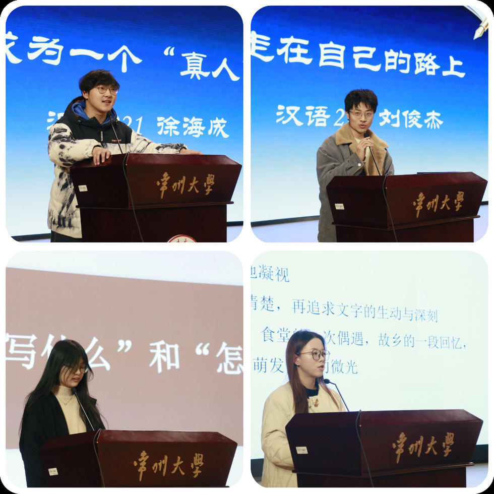 在文学创作分享环节,徐海成从勇敢动笔、真实表达和独立思考等方面阐述个人感悟;刘俊杰强调了坚持创作、注重阅读与保持平和心态的重要性;祁亚敏建议从模仿经典、书写日常小事入手,逐步提升创作能力;朱宣宣则针对“写什么”与“怎样写”分享了具体写作技巧。