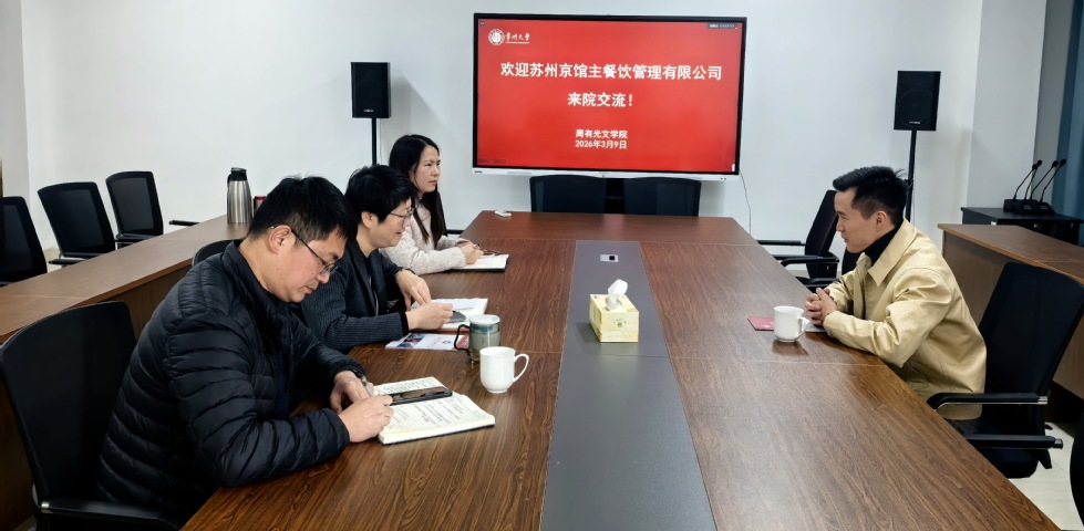 3月9日下午,苏州京馆主餐饮管理有限公司法定代表人、色情网站 社会2018届校友郑益诚来色情网站交流,色情网站 党委书记焦洁庆、副书记嵇炜、毕业班辅导员张燕红参加会议。